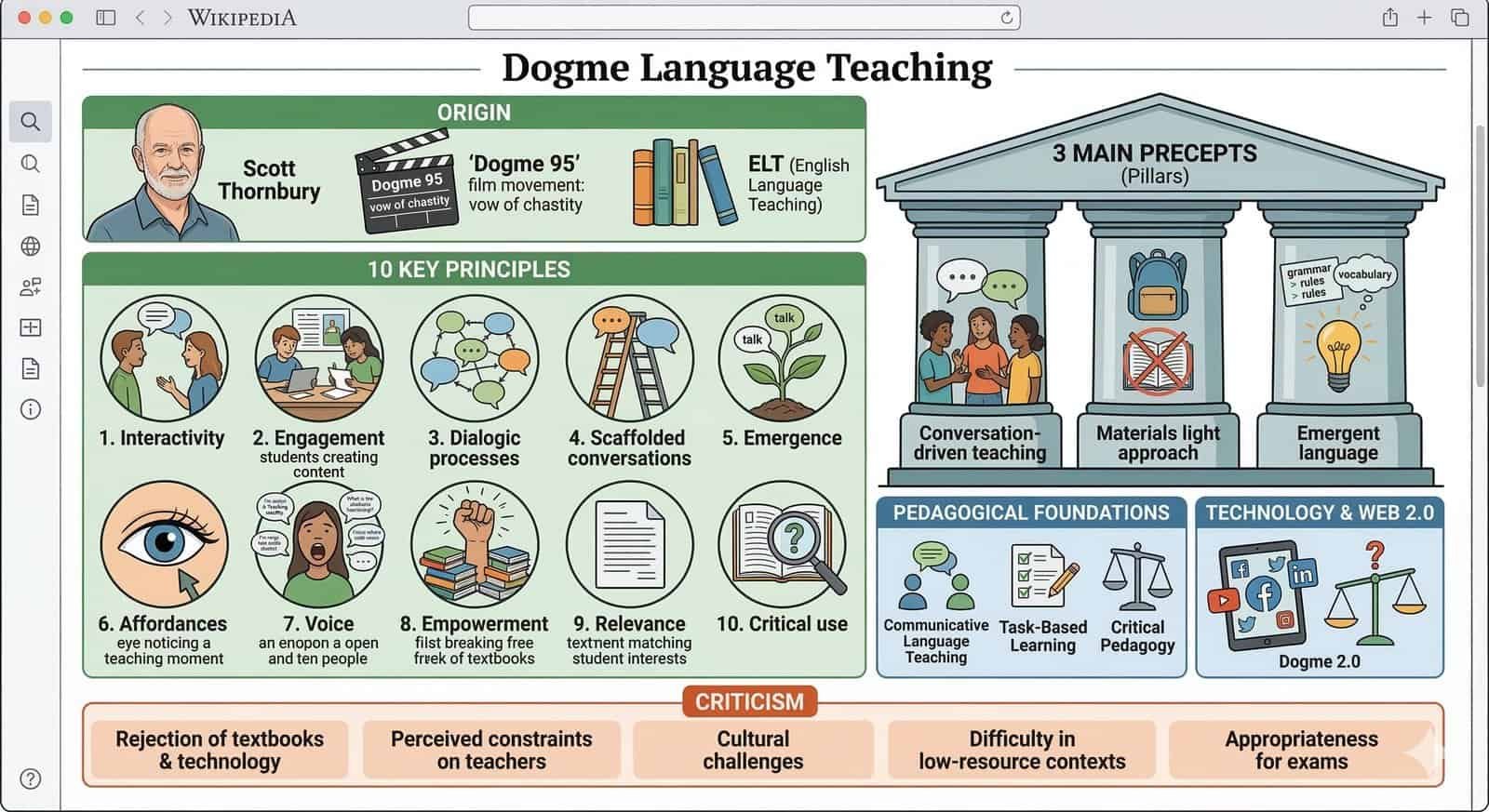 In a world where authenticity and engagement matter more than ever, Dogme ELT offers a refreshing, human-centred alternative. The movement was popularised by Scott Thornbury, who argued that overplanning, pre-packaged materials, and rigid syllabi often get in the way of real language use.